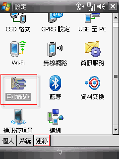 A-1. 執行:系統列→設定→連線→連線設定(自動配置)