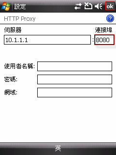 B-5. 如果您的設定值不正確,請點一下HTTP伺服器的項目,並輸入正確的設定值:伺服器=10.1.1.1 連接埠=8080
